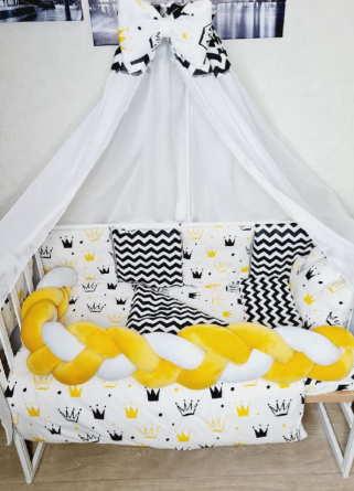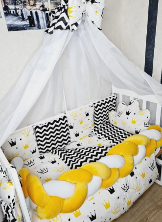 Juno, интернет-магазин детских товаров\\Комплект постільної білизни Bonna Koss в дитяче ліжечко Корона Жовтий