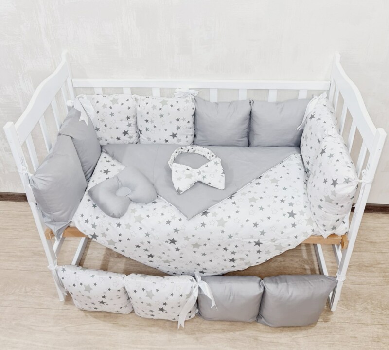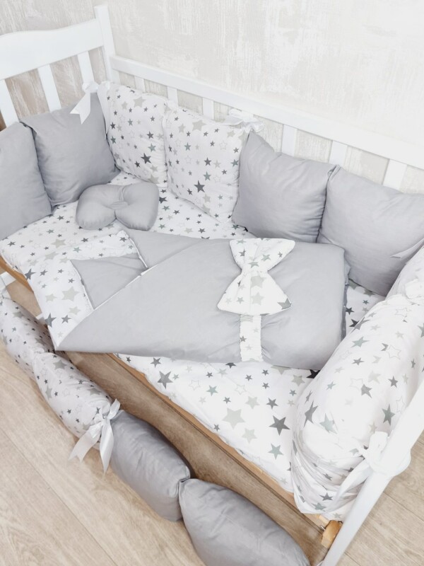 Juno, интернет-магазин детских товаров\\Комплект постільної білизни Bonna Eco в дитяче ліжечко Зірочки Графіт