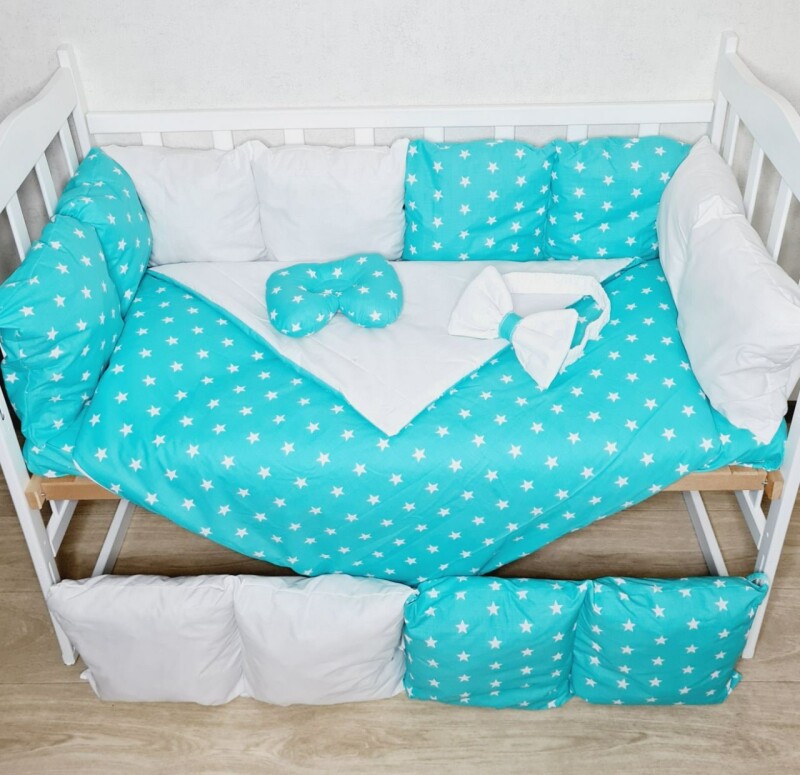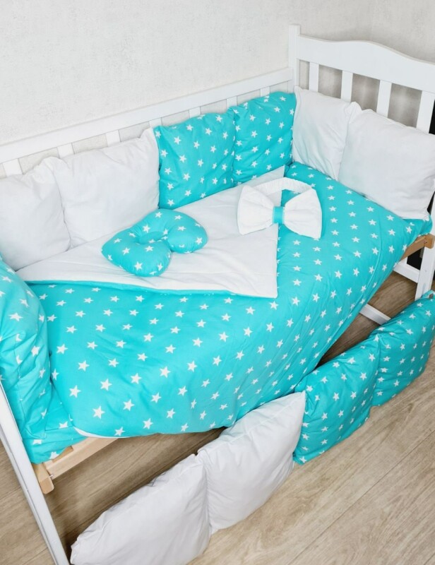 Juno, интернет-магазин детских товаров\\Комплект постільної білизни Bonna Eco в дитяче ліжечко Зірочки Бірюзові