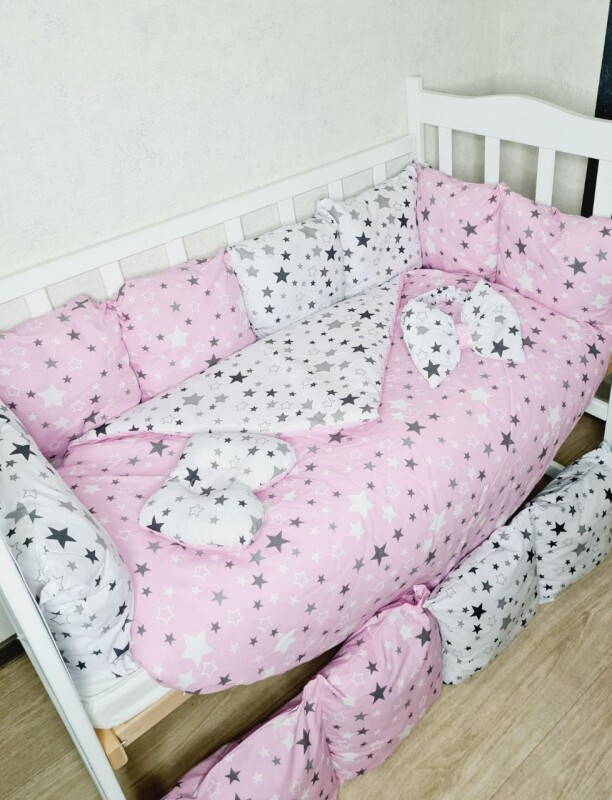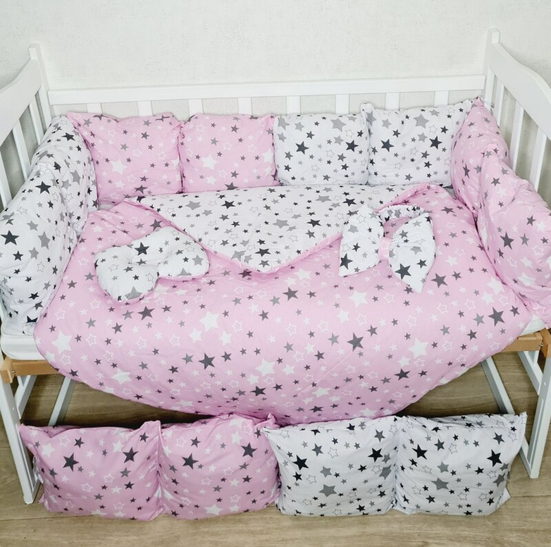 Juno, интернет-магазин детских товаров\\Комплект постільної білизни Bonna Eco в дитяче ліжечко Зірочки Рожеві