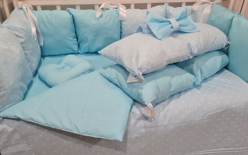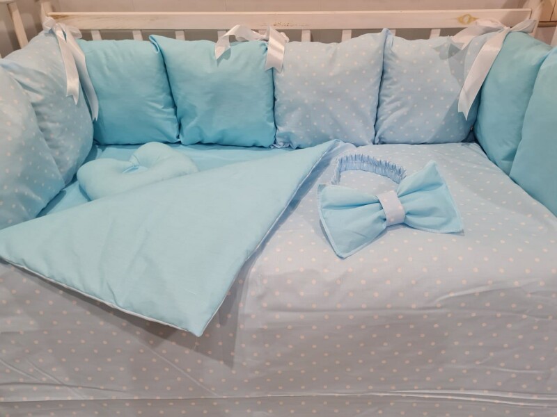 Juno, интернет-магазин детских товаров\\Комплект постільної білизни Bonna Eco в дитяче ліжечко Блакитний у горошок