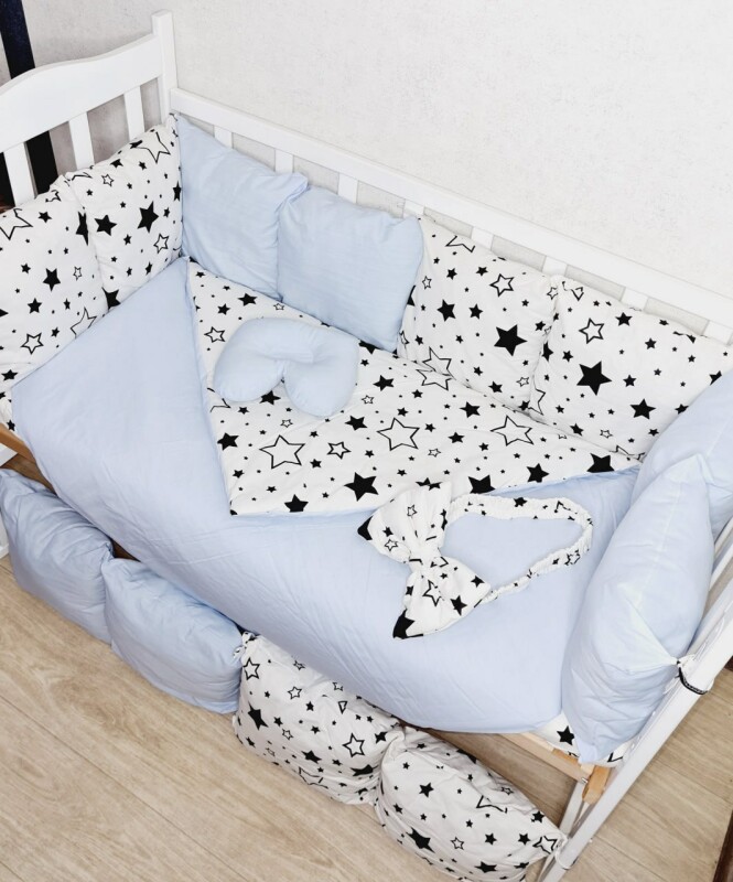 Juno, интернет-магазин детских товаров\\Комплект постільної білизни Bonna Eco в дитяче ліжечко Зірочки Блакитні