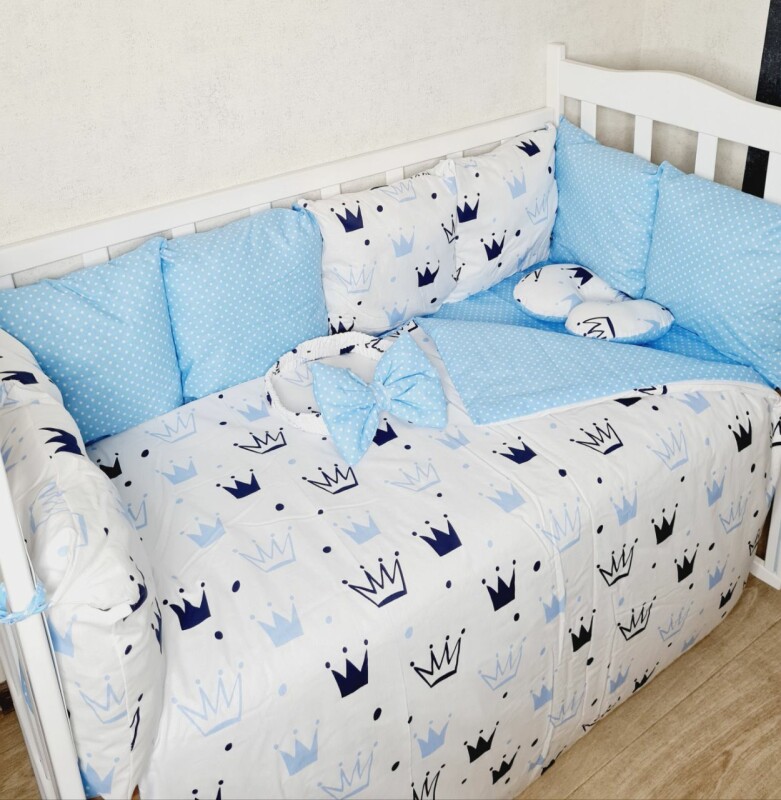 Juno, интернет-магазин детских товаров\\Комплект постільної білизни Bonna Eco в дитяче ліжечко Корона Блакитна