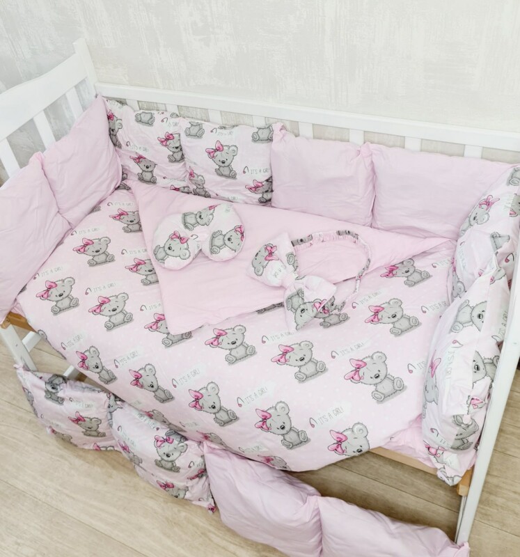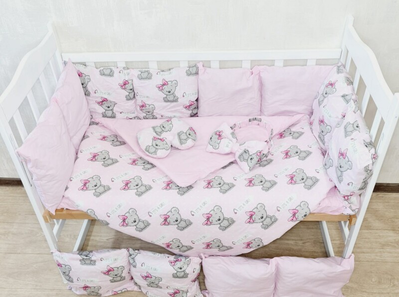 Комплект постільної білизни Bonna Eco в дитяче ліжечко Тедді Рожевий