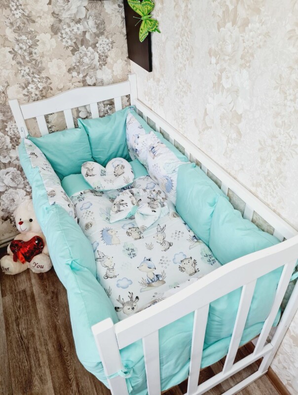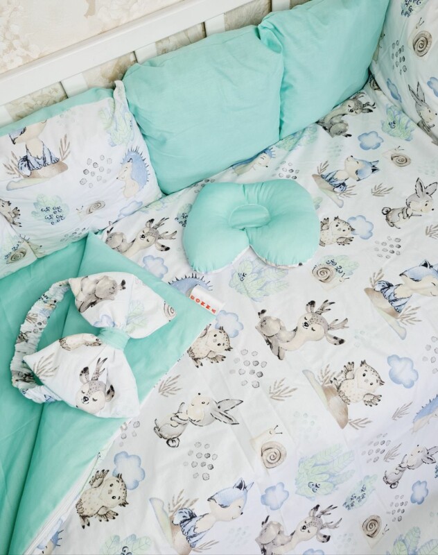 Juno, интернет-магазин детских товаров\\Комплект постільної білизни Bonna Eco в дитяче ліжечко Бірюзові Лісові звіри