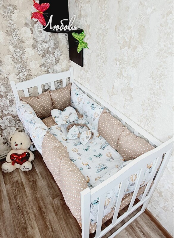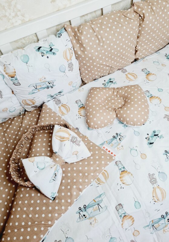 Juno, интернет-магазин детских товаров\\Комплект постільної білизни Bonna Eco в дитяче ліжечко Літачки Коричневі