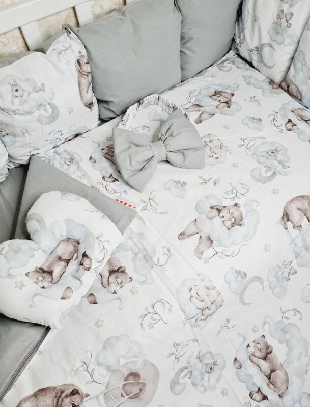 Комплект постільної білизни Bonna Premium в дитяче ліжечко Ведмедик Сірий