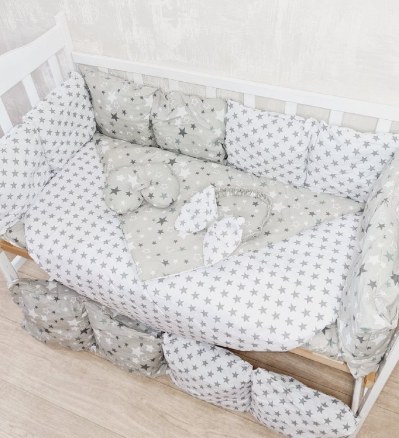 Juno, интернет-магазин детских товаров\\Комплект постільної білизни Bonna Eco в дитяче ліжечко Зірки Сірий