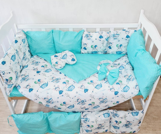 Juno, интернет-магазин детских товаров\\Комплект постільної білизни Bonna Eco в дитяче ліжечко Мишки М'ятний