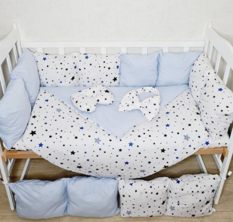 Juno, интернет-магазин детских товаров\\Комплект постільної білизни Bonna Eco в дитяче ліжечко Зірки Блакитний