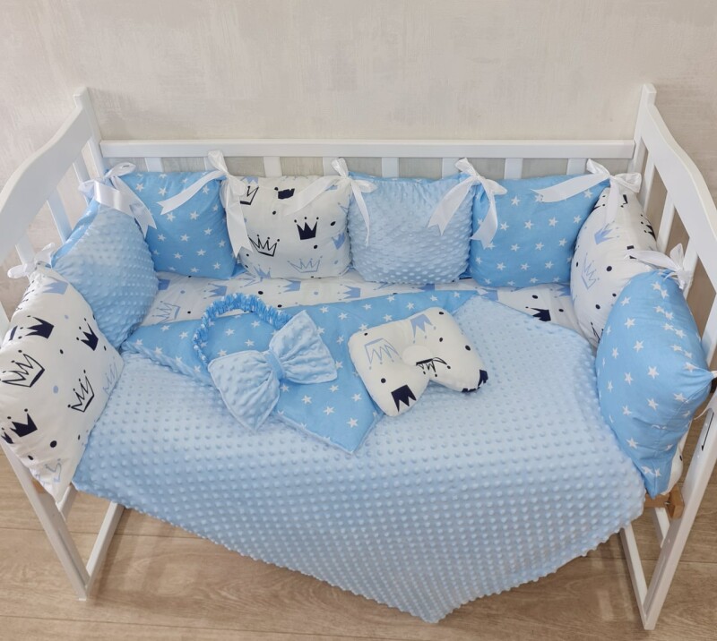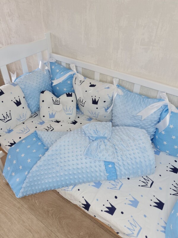 Juno, интернет-магазин детских товаров\\Комплект постільної білизни Bonna Mineco в дитяче ліжечко Корона Блакитна
