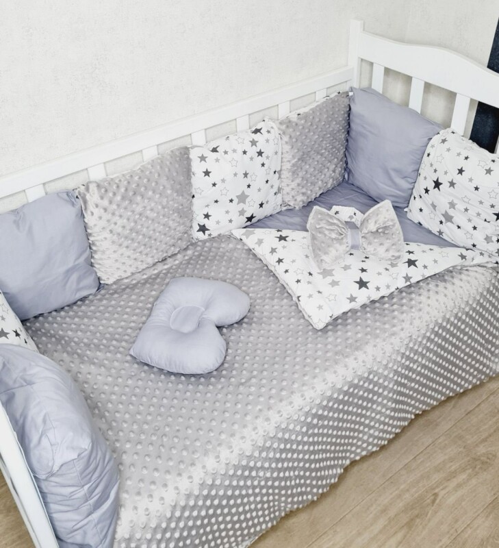 Juno, интернет-магазин детских товаров\\Комплект постільної білизни Bonna Mineco в дитяче ліжечко Зірочки Графітові