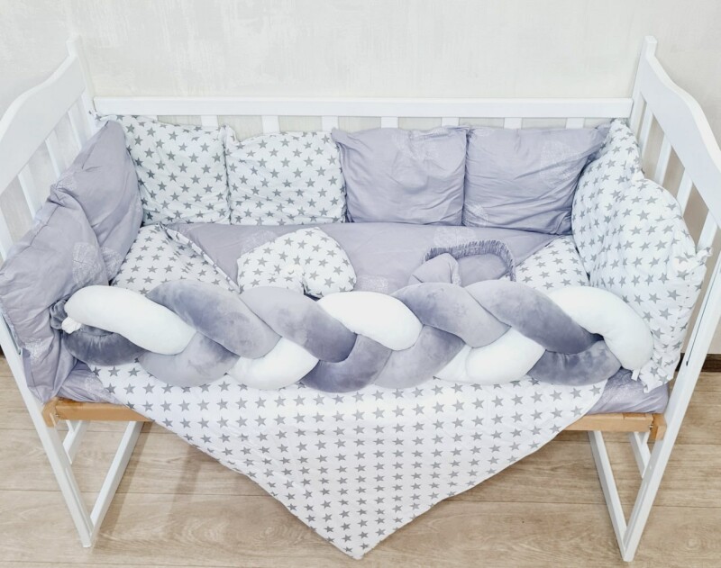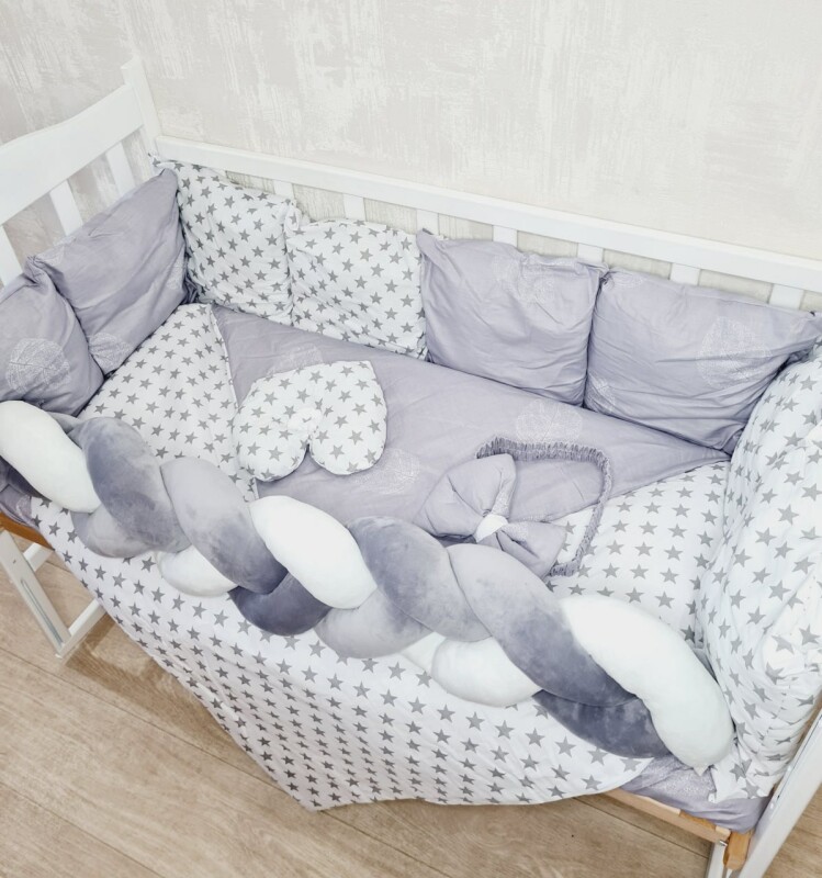 Juno, интернет-магазин детских товаров\\Комплект постільної білизни Bonna Elegance в дитяче ліжечко Зірочки сірі
