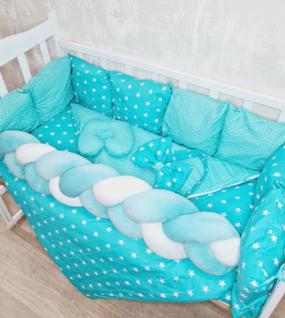 Juno, интернет-магазин детских товаров\\Комплект постільної білизни Bonna Elegance в дитяче ліжечко Зірки М'ята