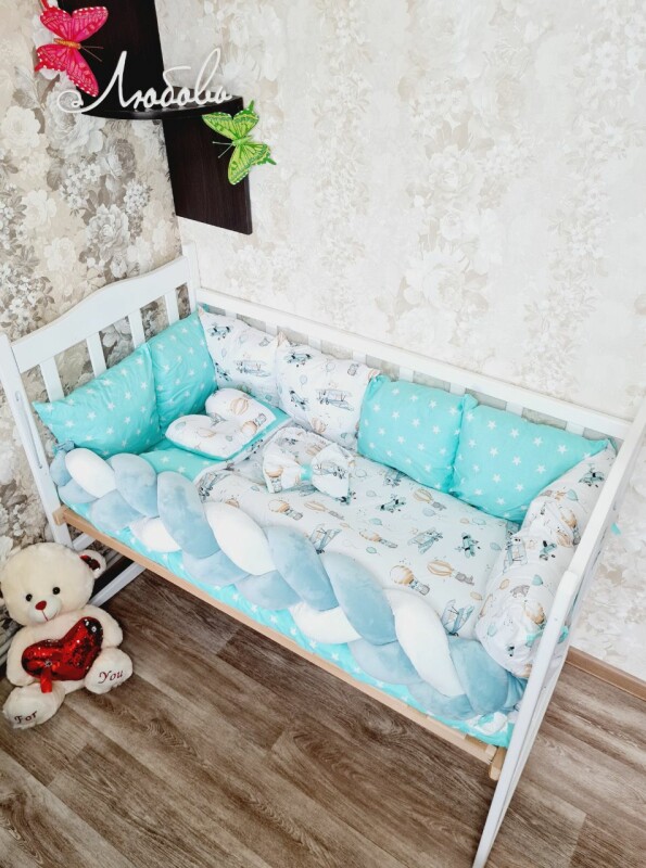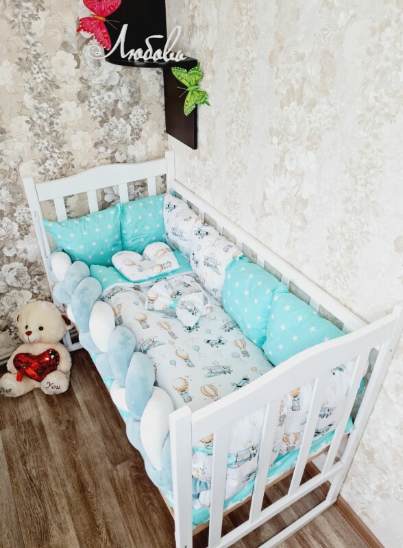 Juno, интернет-магазин детских товаров\\Комплект постільної білизни Bonna Elegance в дитяче ліжечко Літачки м'ятні