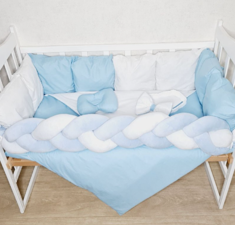 Комплект постільної білизни Bonna Elegance в дитяче ліжечко Біло-Блакитний
