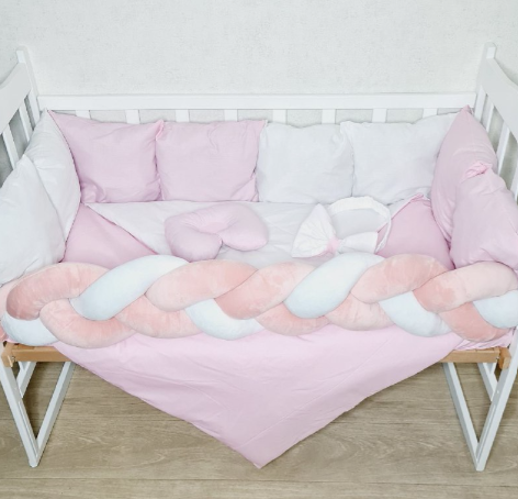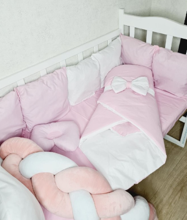 Комплект постільної білизни Bonna Elegance в дитяче ліжечко Біло-Рожевий