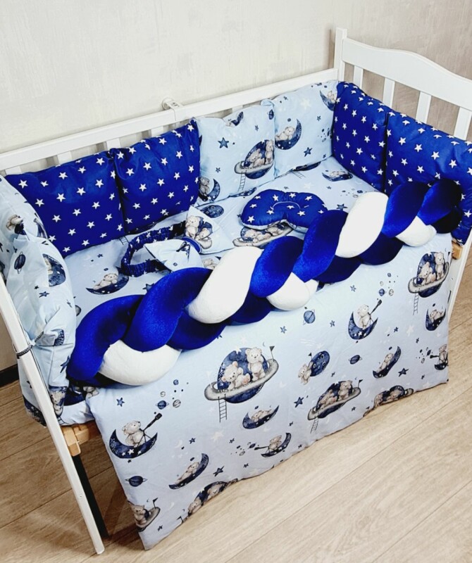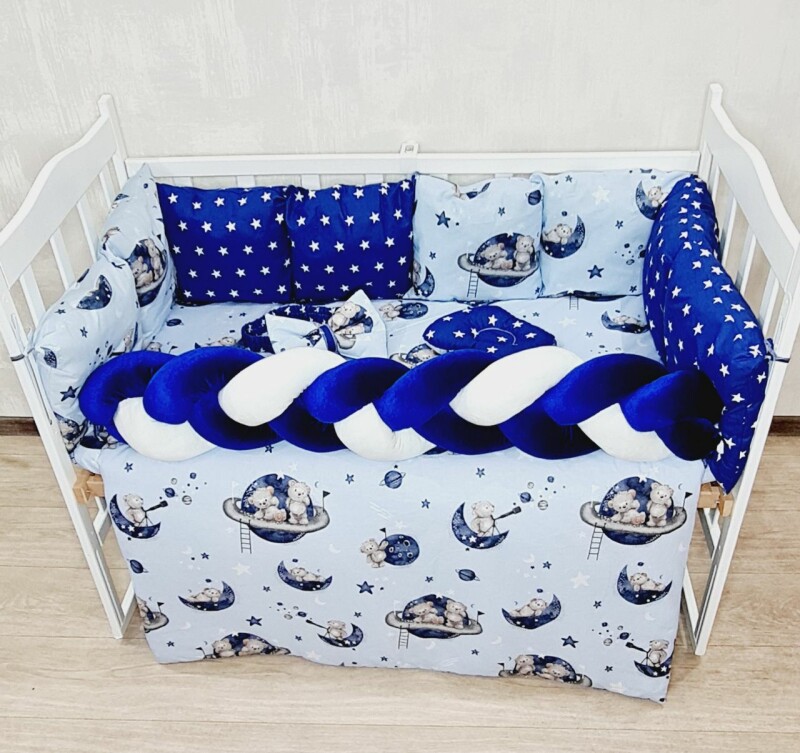 Juno, интернет-магазин детских товаров\\Комплект постільної білизни Bonna Elegance в дитяче ліжечко Космос Темно-блакитний