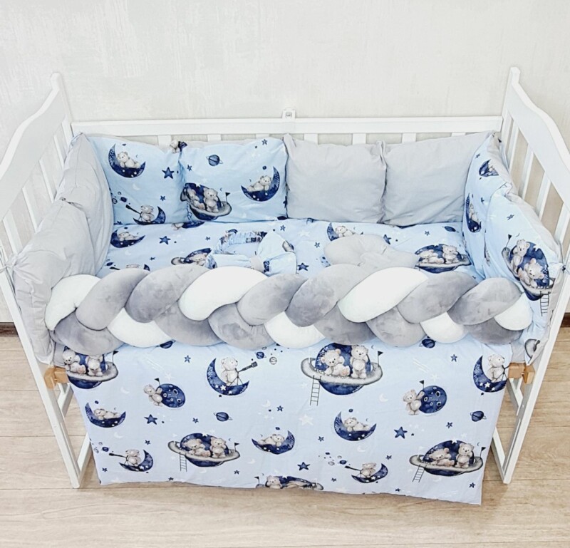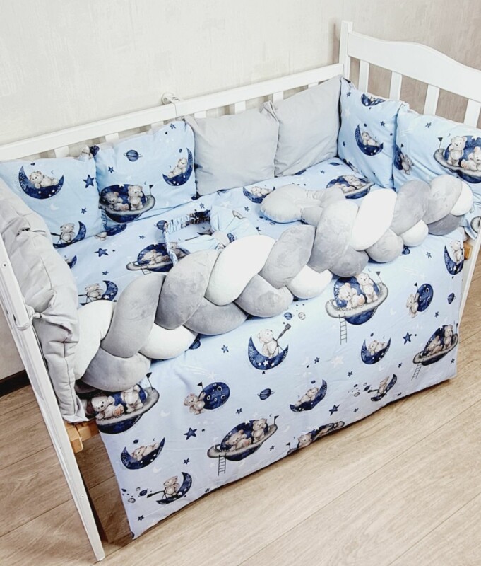 Juno, интернет-магазин детских товаров\\Комплект постільної білизни Bonna Elegance в дитяче ліжечко Космос сірий