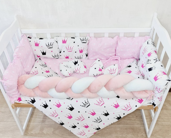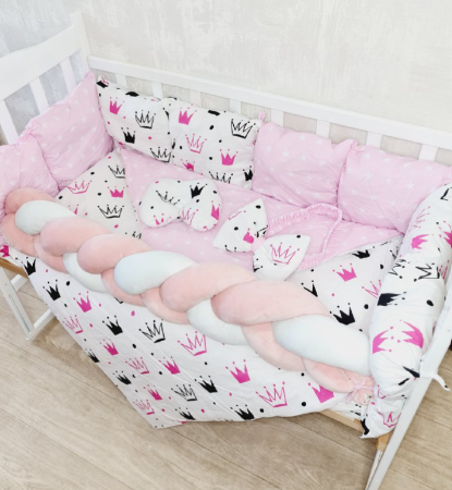 Juno, интернет-магазин детских товаров\\Комплект постільної білизни Bonna Elegance в дитяче ліжечко Корона Рожевий