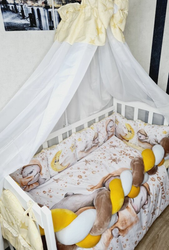 захист знімний (6 подушечки 30х30см, коса 180см на 2 сторони ліжечка)