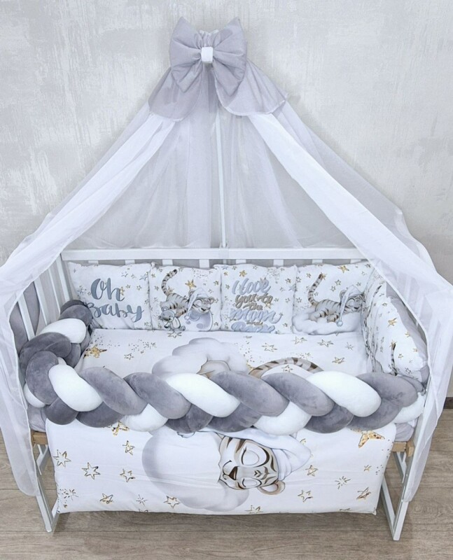 Juno, интернет-магазин детских товаров\\Комплект постільної білизни Bonna Premium в дитяче ліжечко Тигреня на хмарці