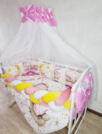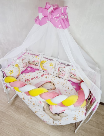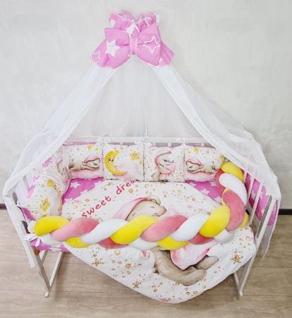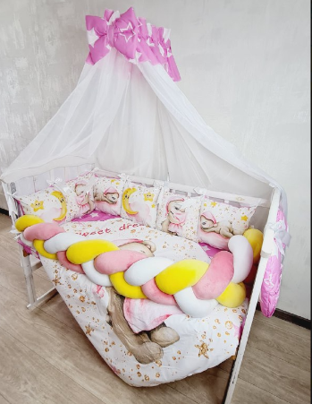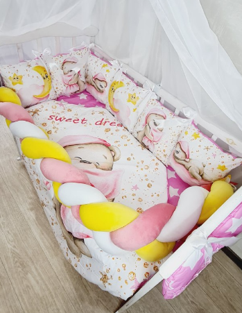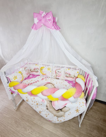 захист знімний (6 подушечки 30х30см, коса 180см на 2 сторони ліжечка)