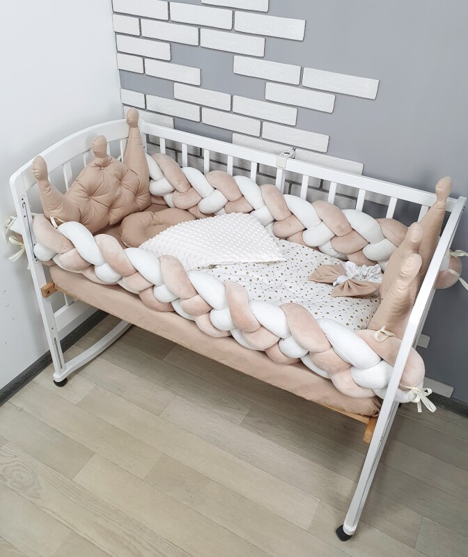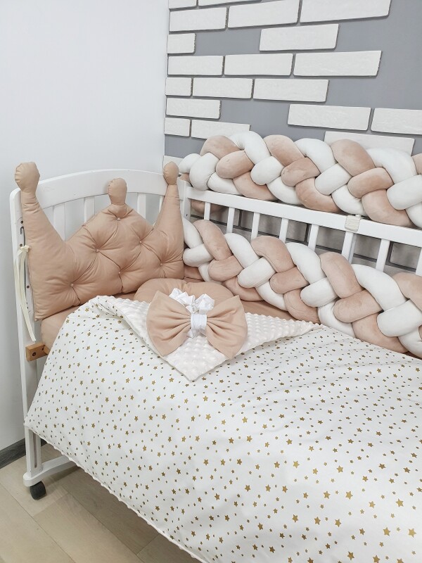 Комплект постільної білизни в дитяче ліжечко, бежевий з коронами.
