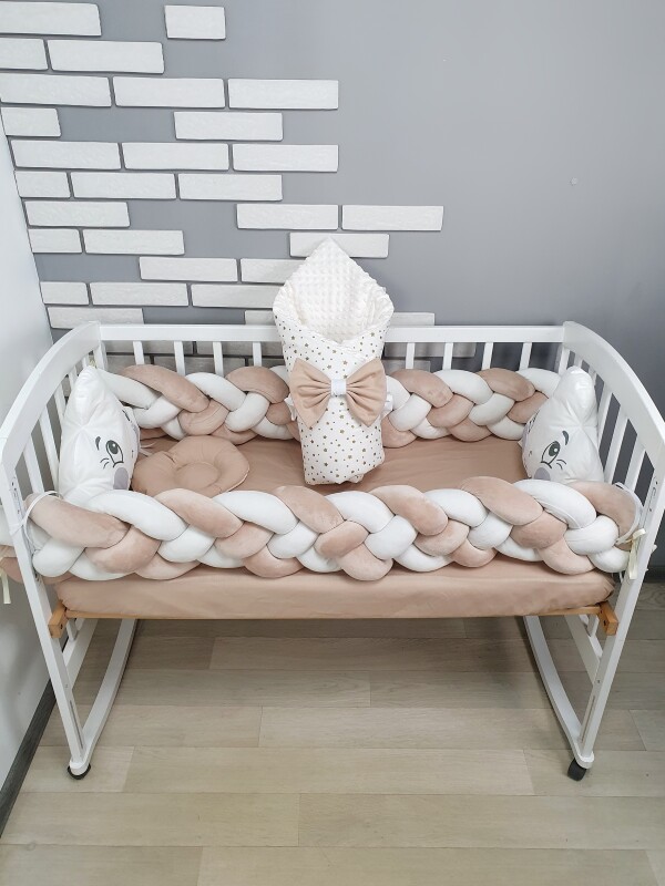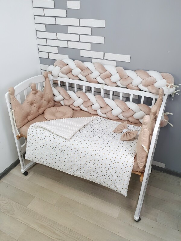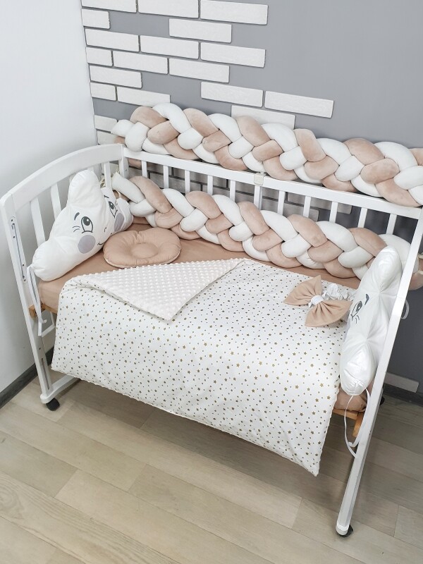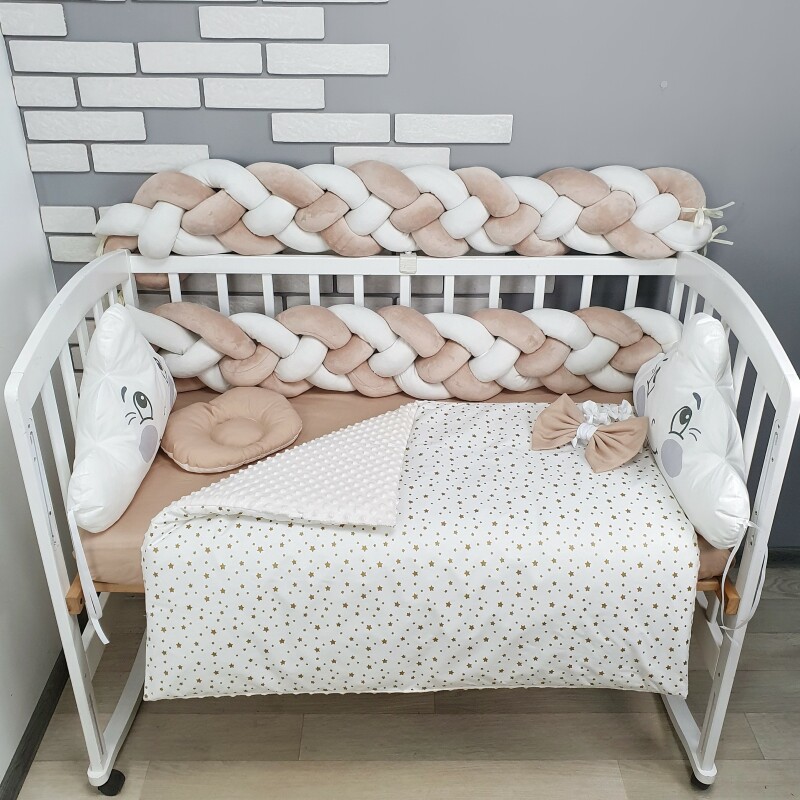 Комплект постільної білизни в дитяче ліжечко, бежевий з хмаринками.
