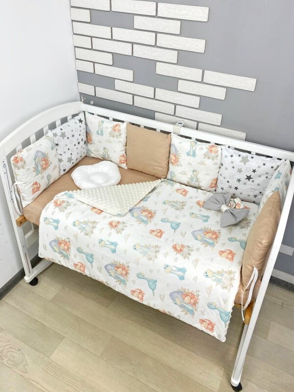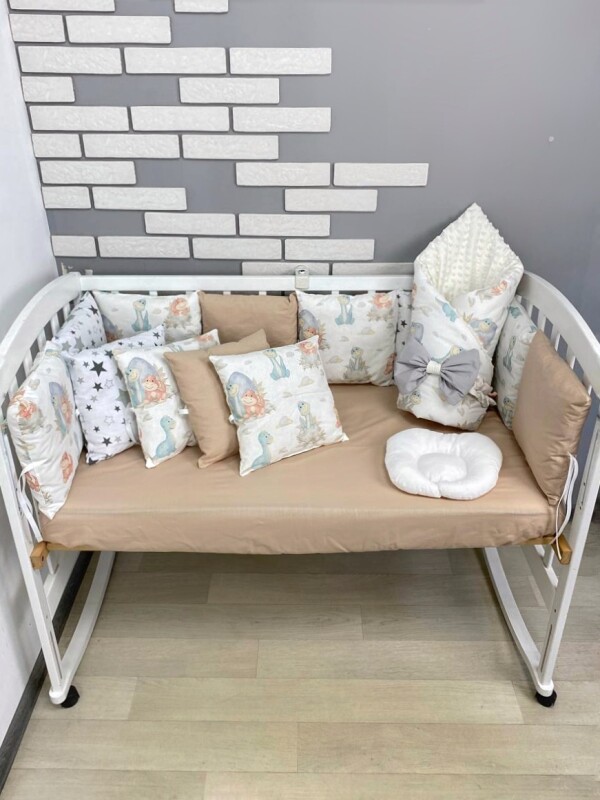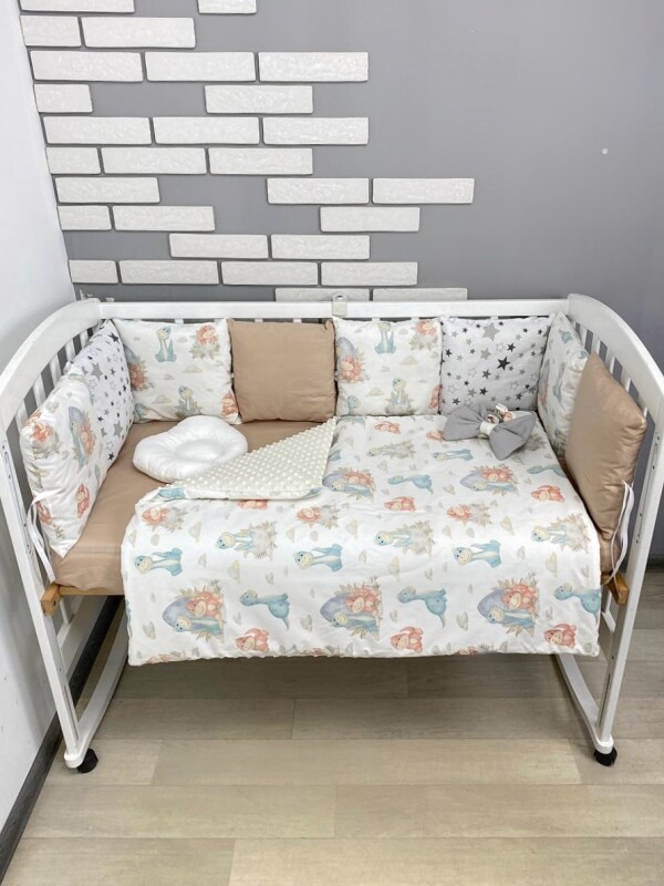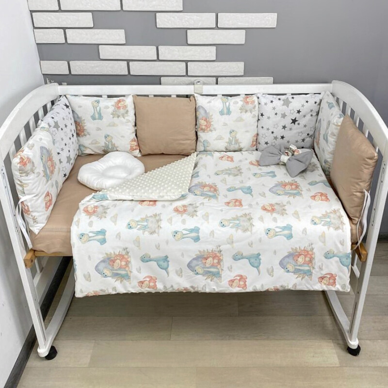 Комплект постільної билизни, в дитяче ліжечко. Бежевий з динозавриками