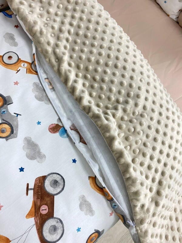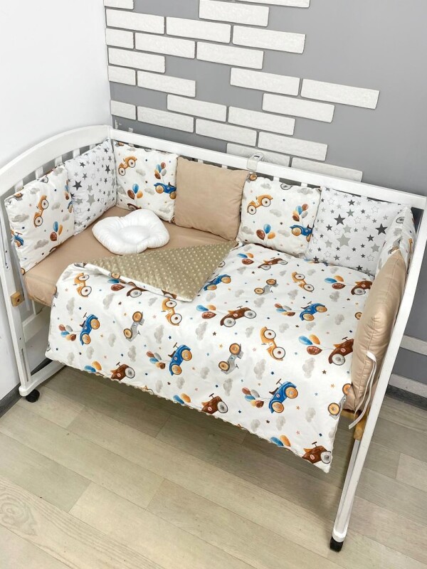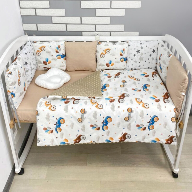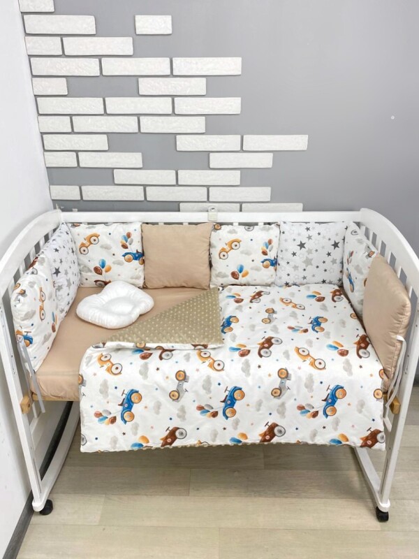 Комплект постільної билизни, в дитяче ліжечко. Бежевий з машинками ретро