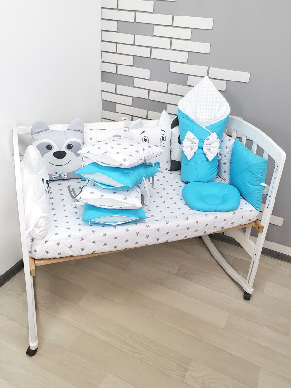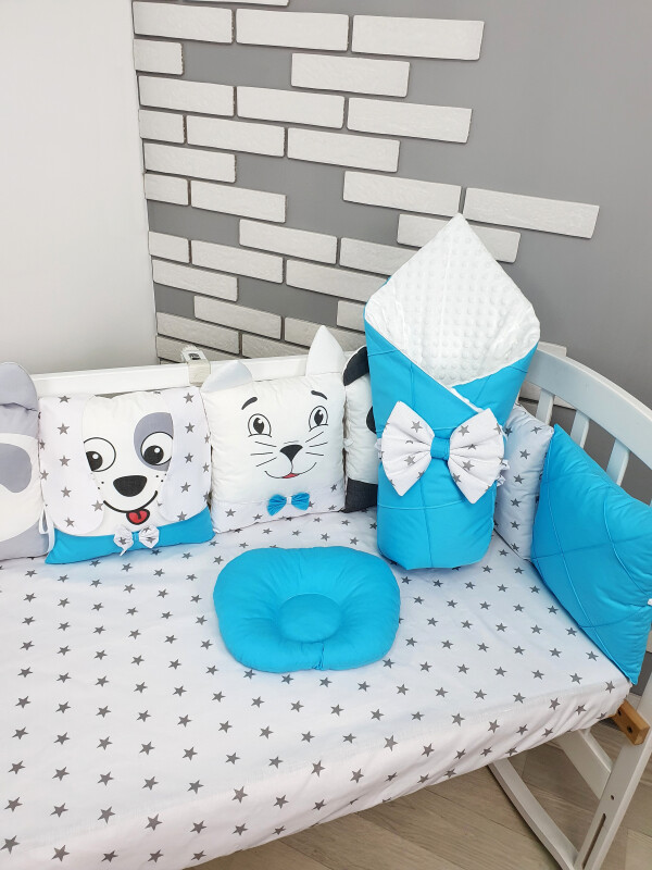 Цей набір також включає в себе стильний бант на резинці, ортопедичну подушку для забезпечення правильного сну вашого малюка та простирадло на резинці, яке ідеально пасує як до прямокутного матраца розміром 120*60 см, так і до овального розміру 122*72 см.