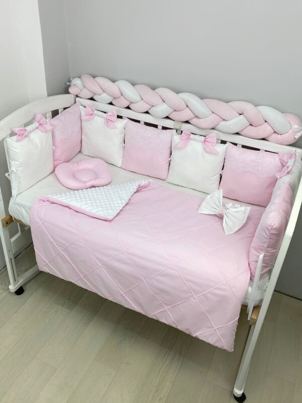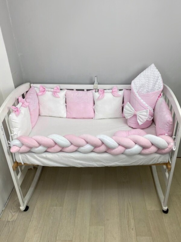 Juno, интернет-магазин детских товаров\\Комплект постільної білизни, в дитяче ліжечко. Рожевий, з косою