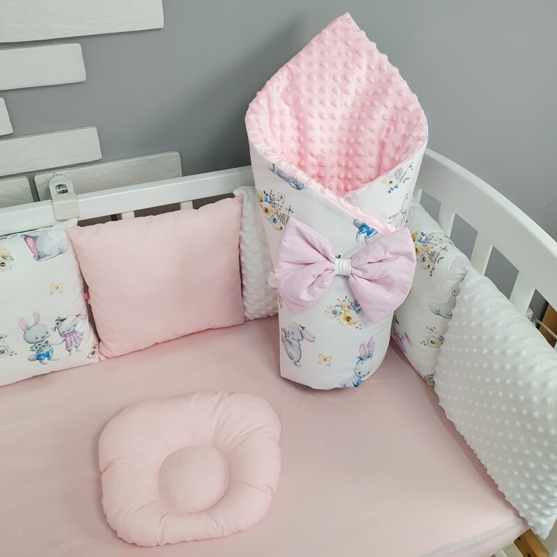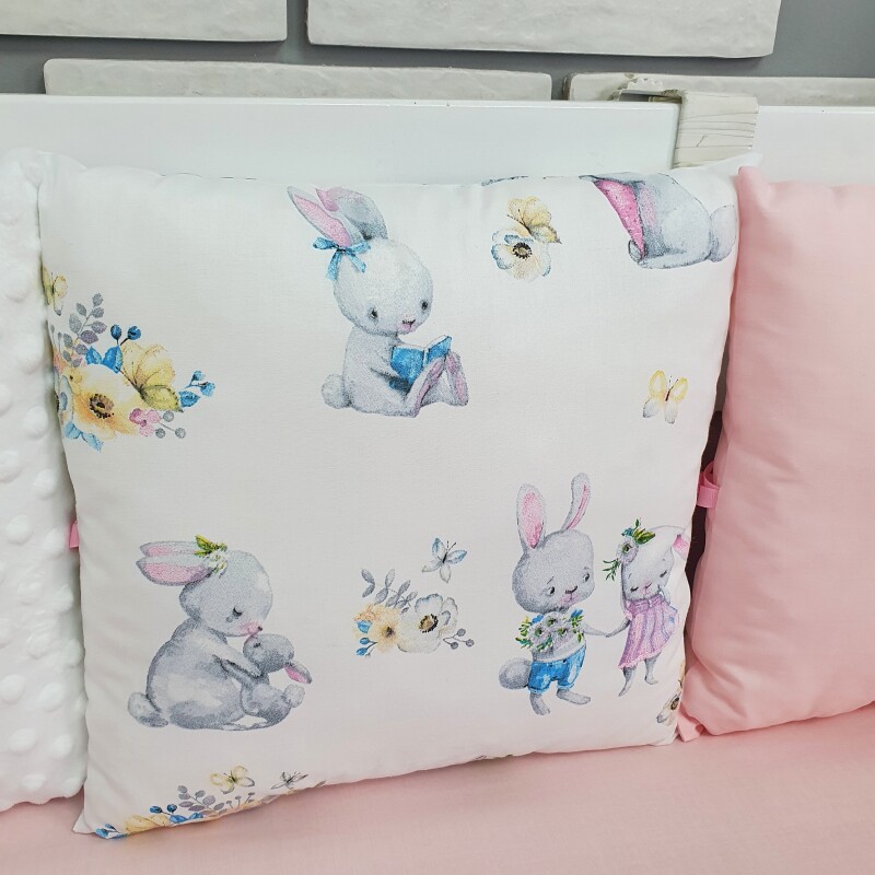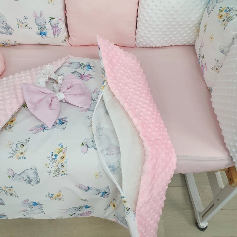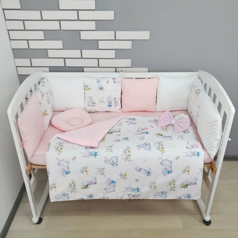 Комплект постільної білизни, в дитяче ліжечко. Зайчики рожеві