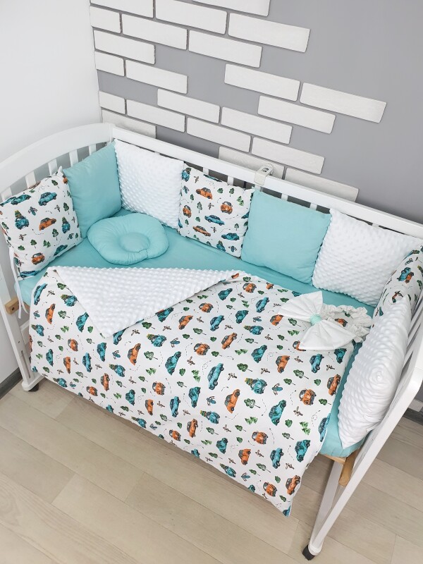 Juno, интернет-магазин детских товаров\\Комплект постільної білизни, в дитяче ліжечко. Бірюзові машинки