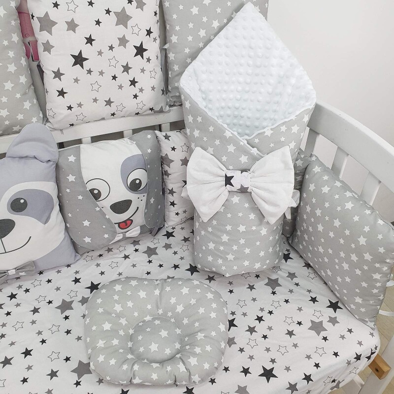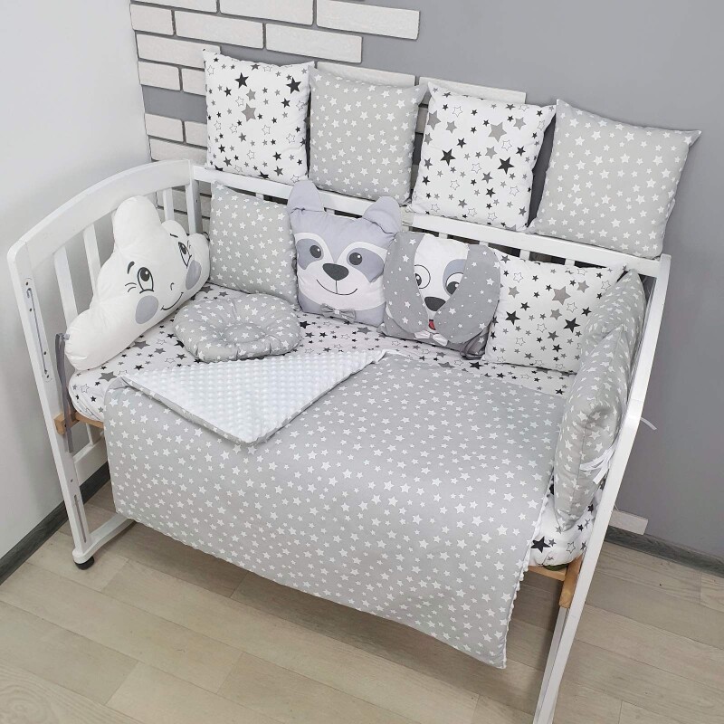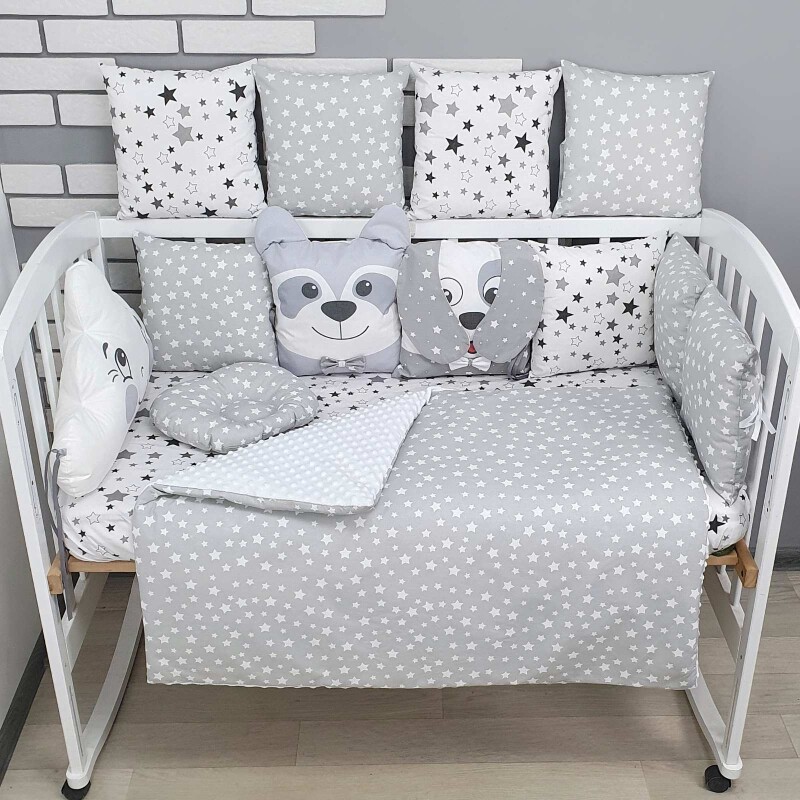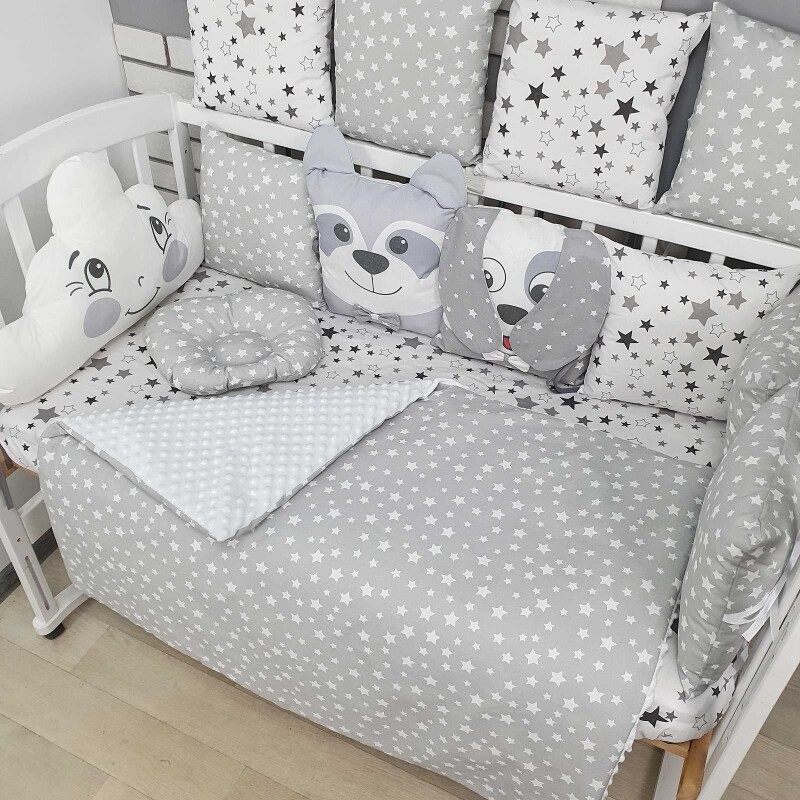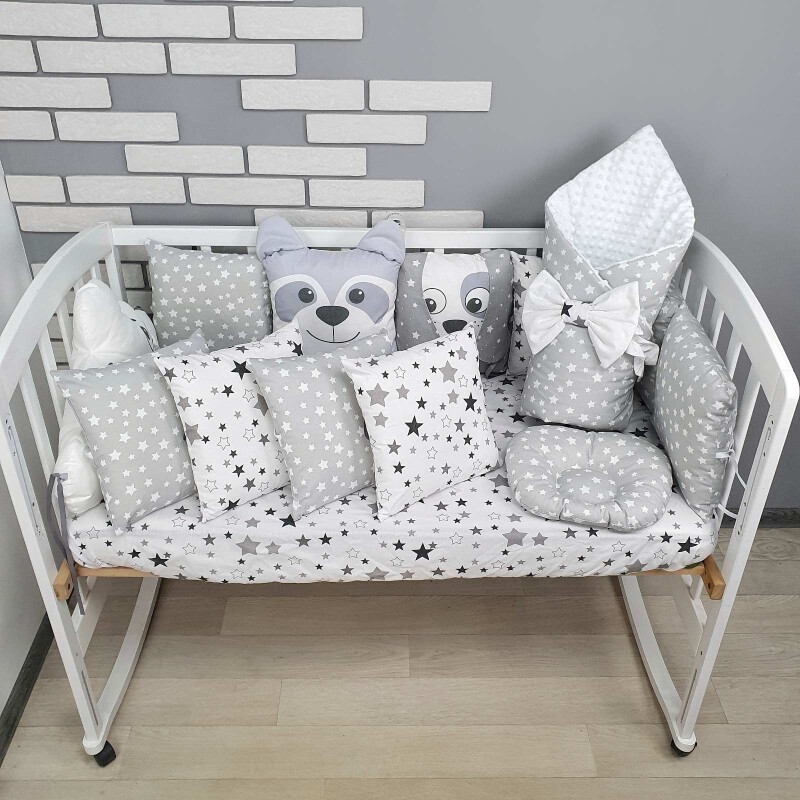 Juno, интернет-магазин детских товаров\\Комплект постільної білизни, в дитяче ліжечко. Сіро-білий, з подушками