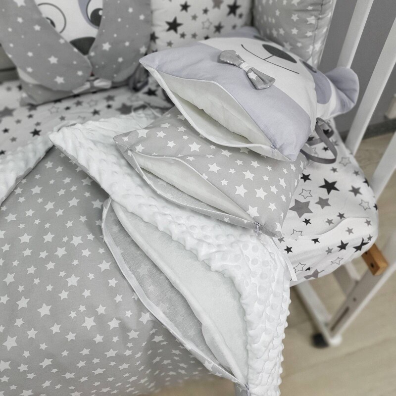 Комплект постільної білизни, в дитяче ліжечко. Сіро-білий, з подушками