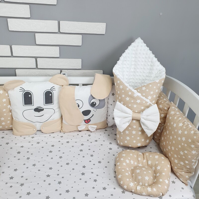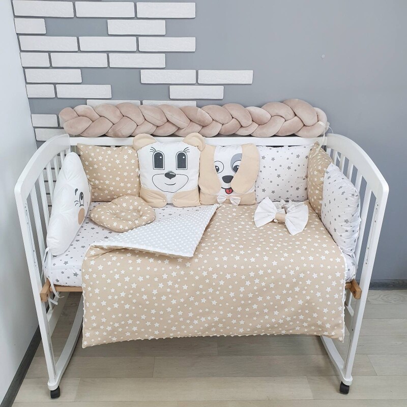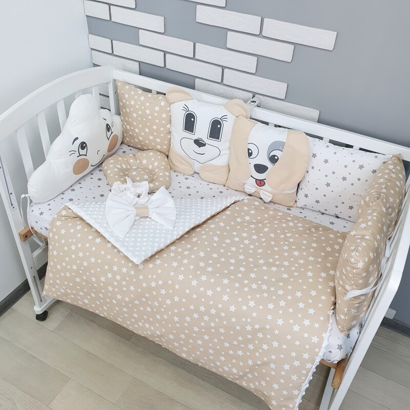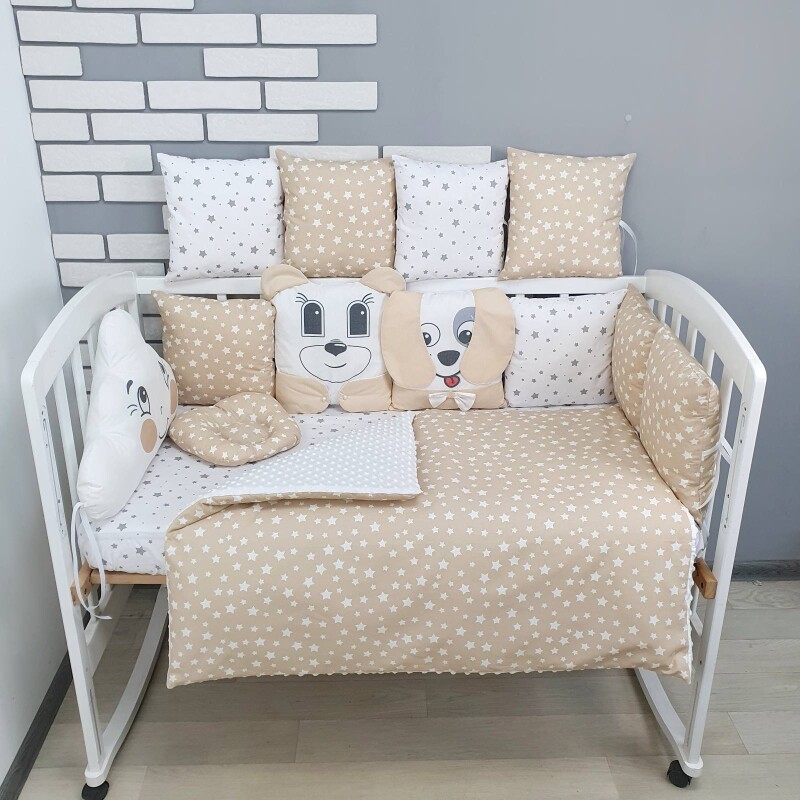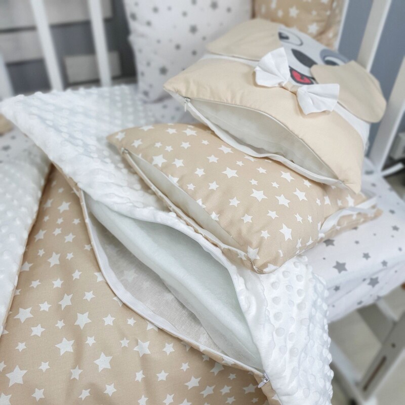 Комплект постільної білизни, в дитяче ліжечко. Бежевий в зірочку, з подушками