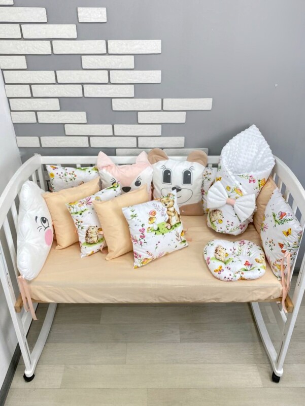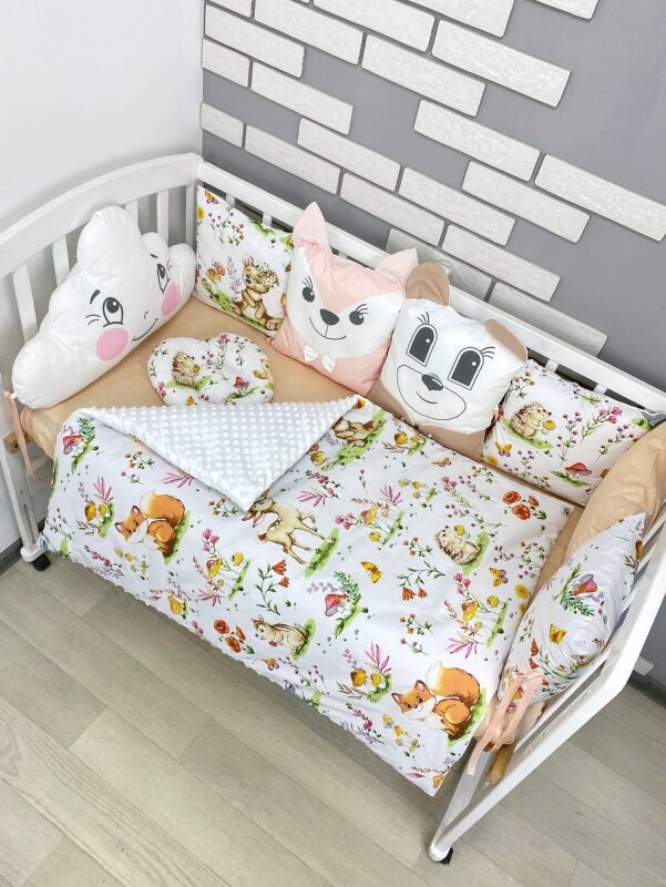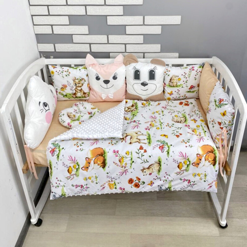 Комплект постільної білизни, в дитяче ліжечко. Лісні звірі, з подушками
