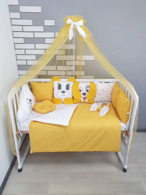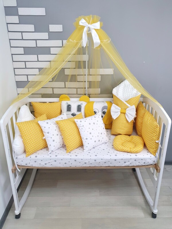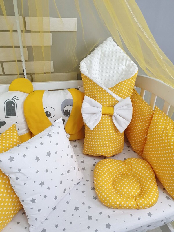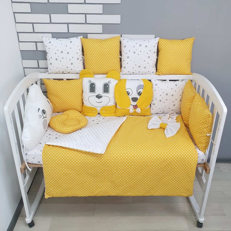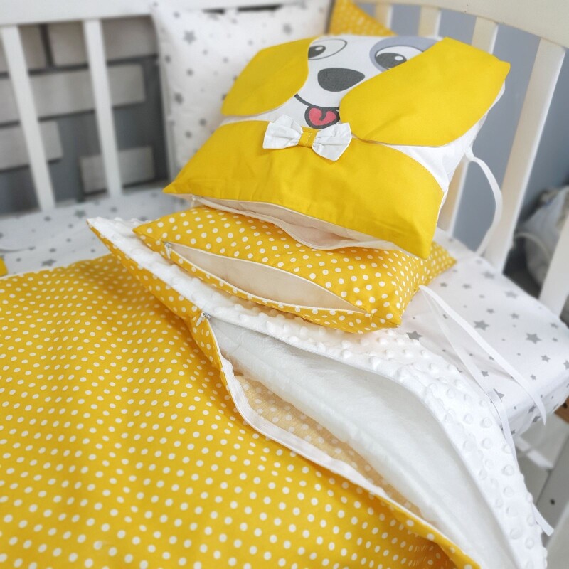 Комплект постільної білизни, в дитяче ліжечко Жовтий в горошок, з подушками