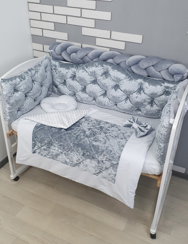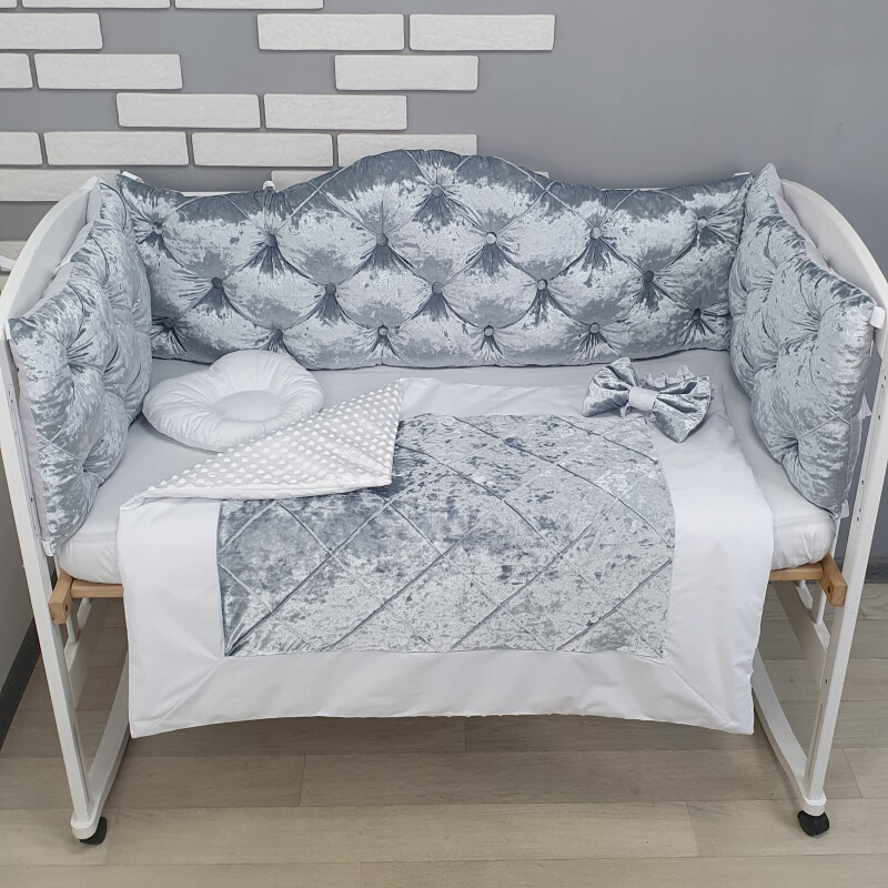 Juno, интернет-магазин детских товаров\\Комплект Сірий бархат із каретною стяжкою з бархатними гудзиками