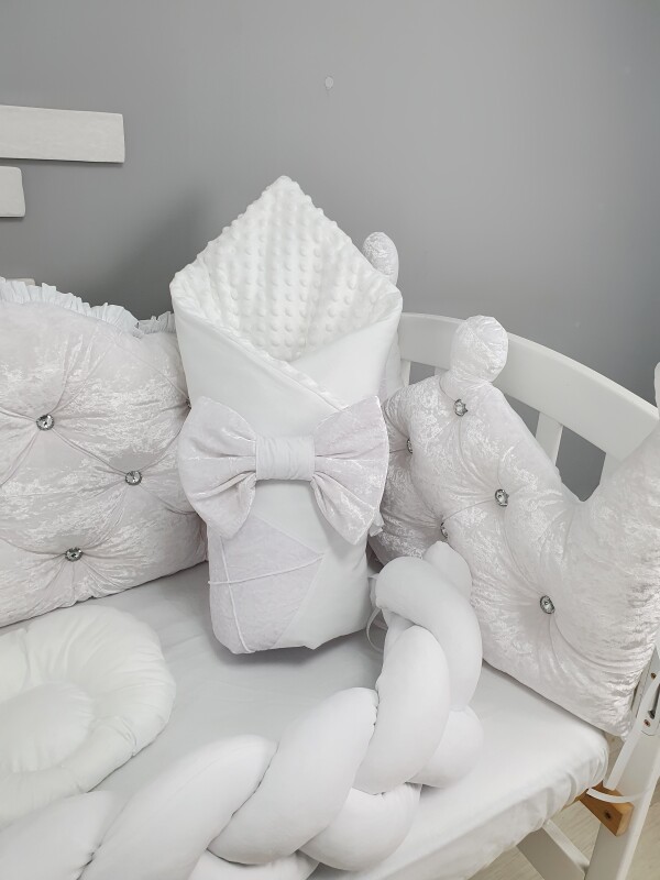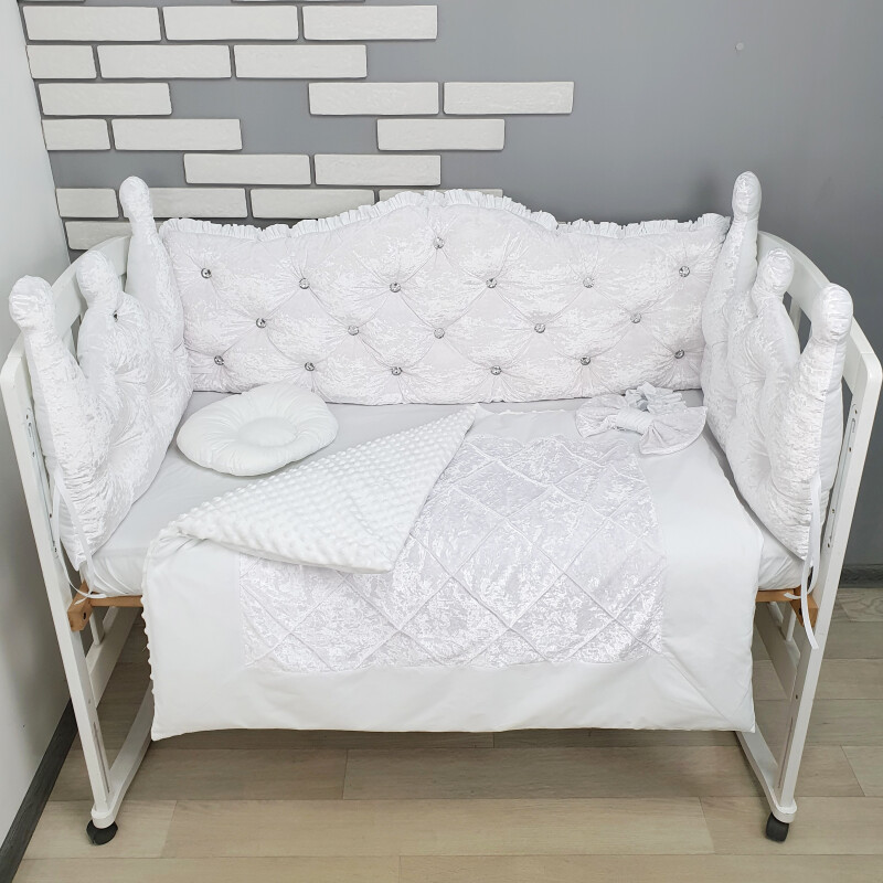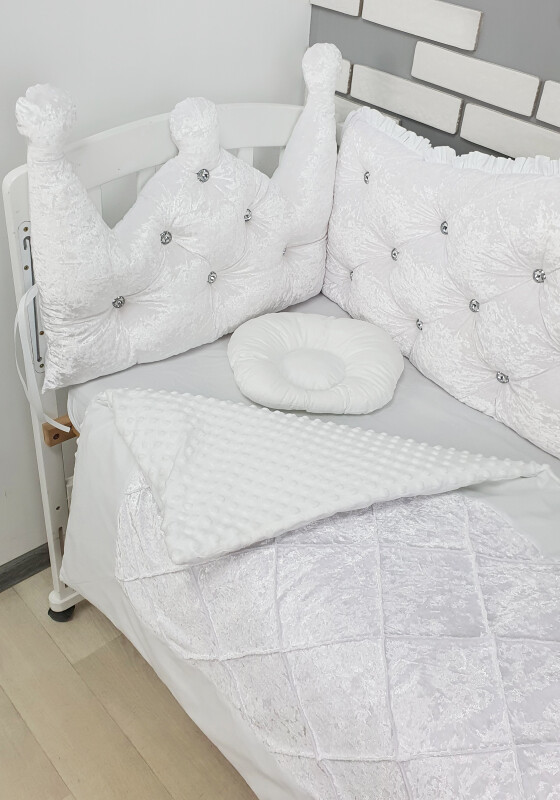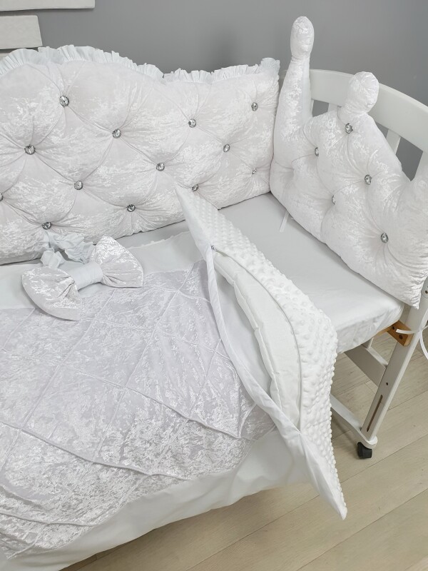 Juno, интернет-магазин детских товаров\\Комплект Білий бархат з великими коронами із каретною стяжкою стразами
