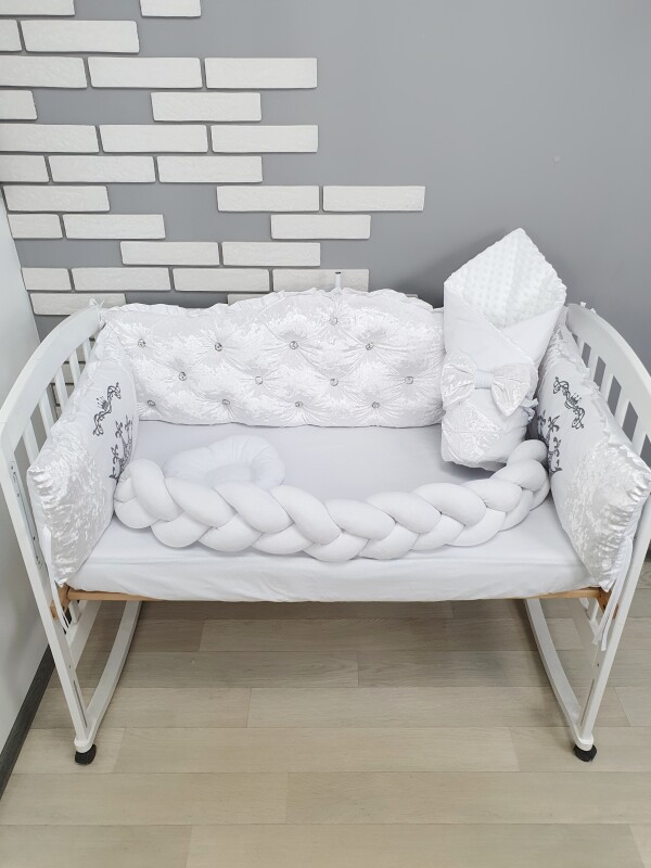 Бортики, які можуть бути встановлені на всі чотири сторони зі з'ємними наволочками, або, якщо вам більше до вподоби, на трьох сторонах, доповнені косичкою завдовжки 120 см, додають не тільки елегантність, але і функціональність для створення найкращого простору для вашого малятка.