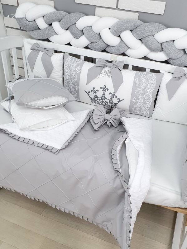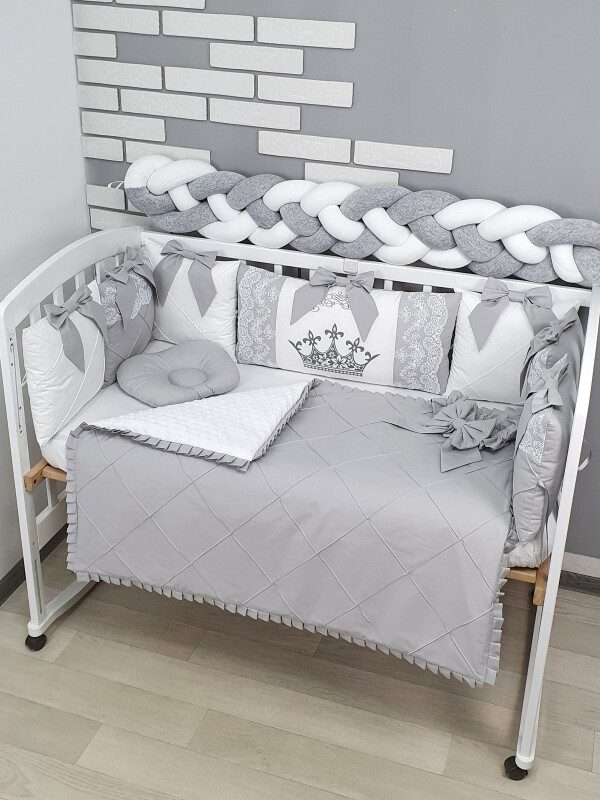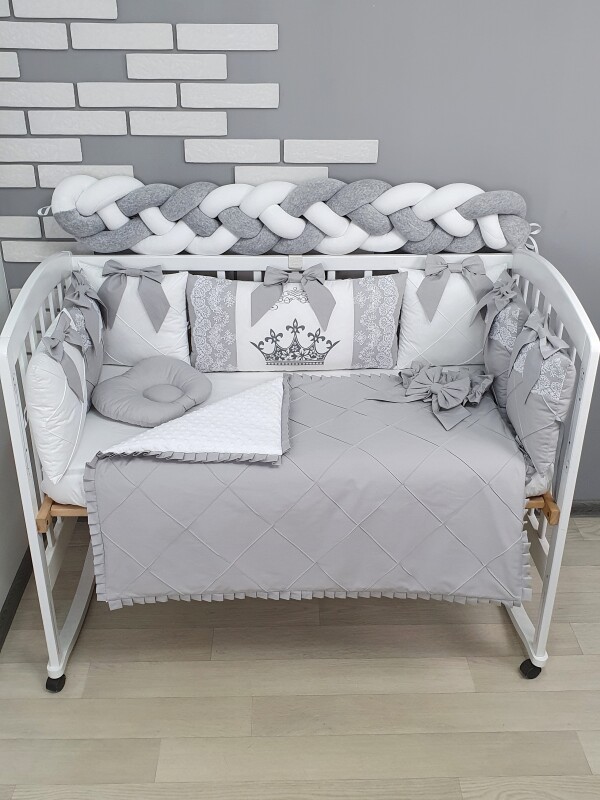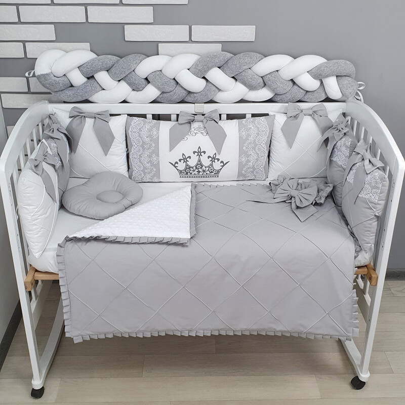 Комплект Сірий із бантами короной принт мереживом та косою на 4 сплетіння