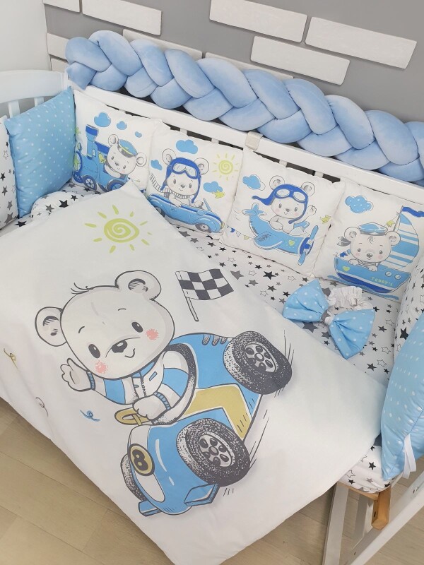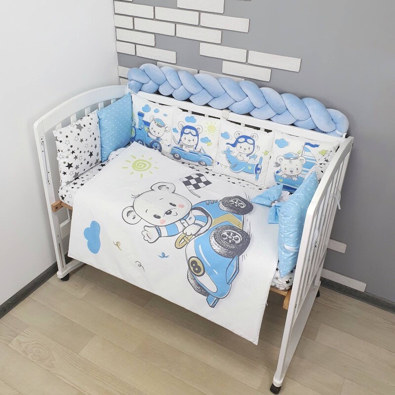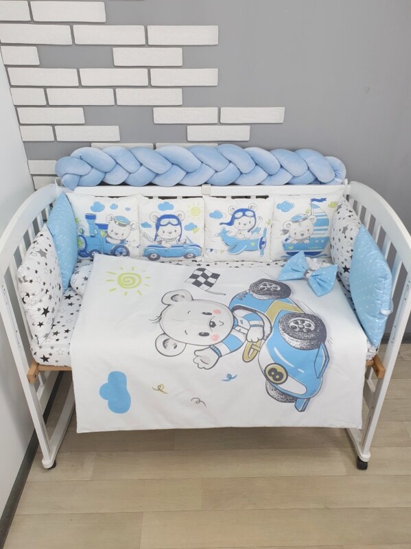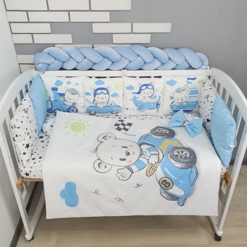 Комплекти постільної білизни, в дитяче ліжечко. Ведмедики на транспорті