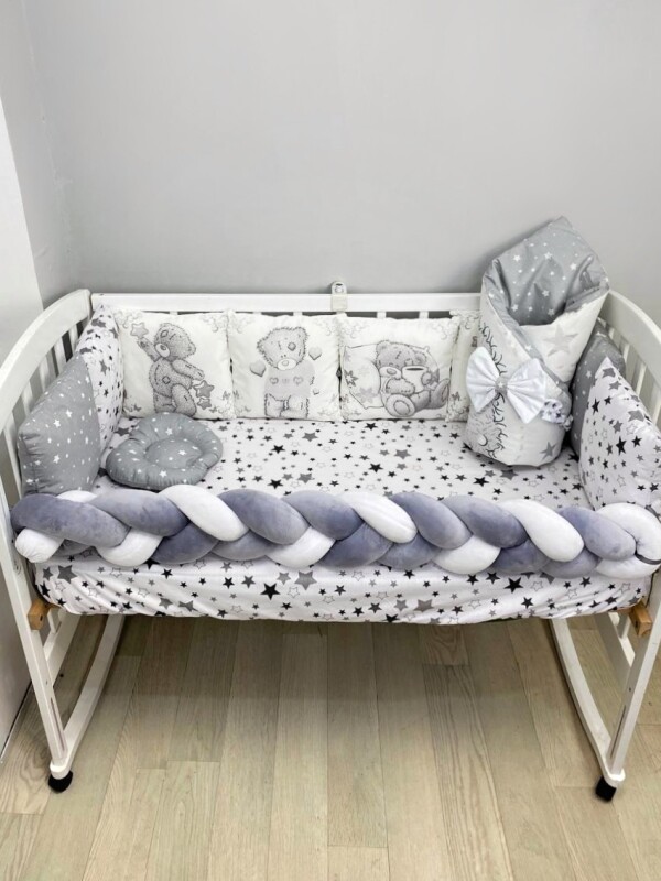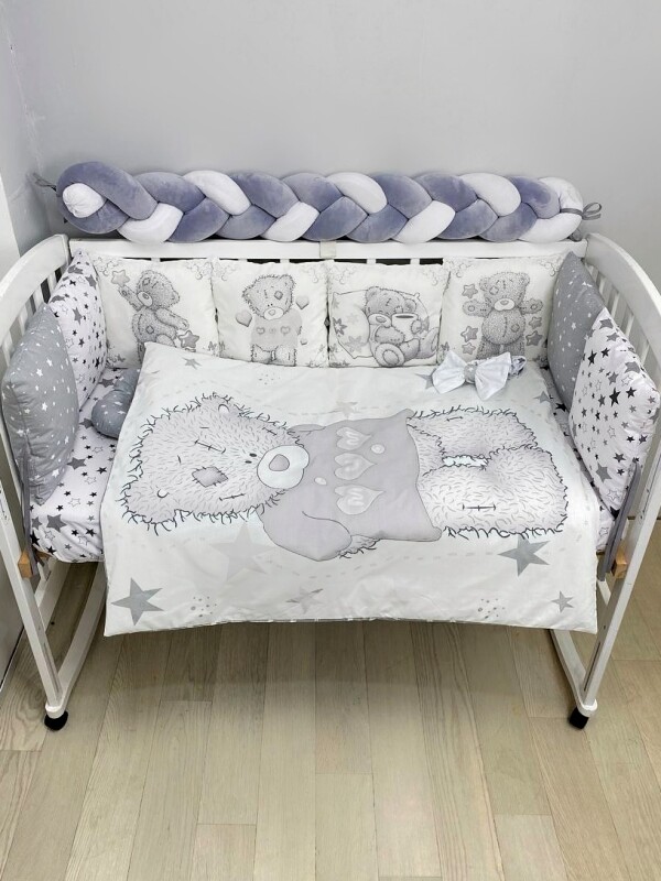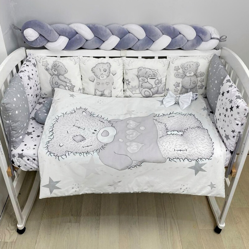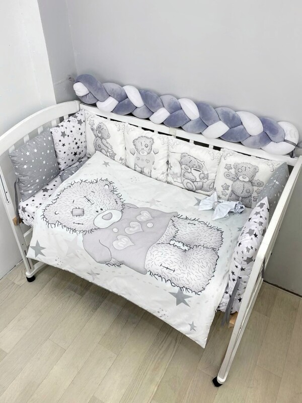Комплекти постільної білизни, в дитяче ліжечко. Тедді сіро-білий