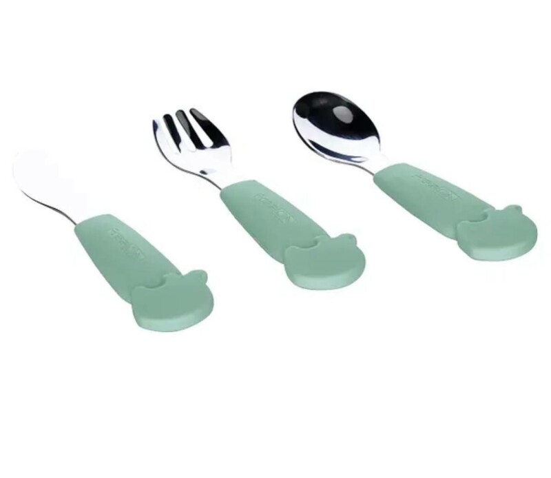 Juno, интернет-магазин детских товаров\\Столові прибори дитячі FreeON Elephant металеві з силіконовою ручкою,м`ятний