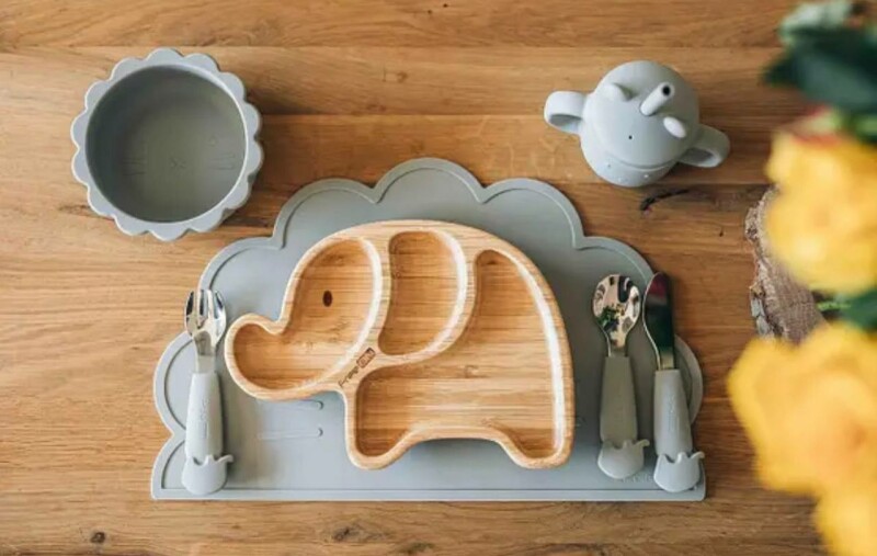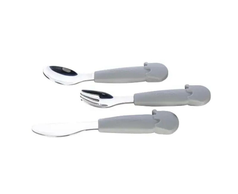 Juno, интернет-магазин детских товаров\\Столові прибори дитячі FreeON Elephant металеві з силіконовою ручкою, сірі