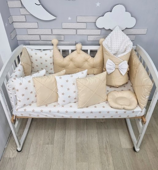 Насолоджуйтеся найкращими моментами з вашим малятком, обираючи наш чудовий комплект для дитячого ліжка. Цей набір створений з найбільшою турботою та увагою до деталей, щоб забезпечити комфорт і безпеку вашого малятка.