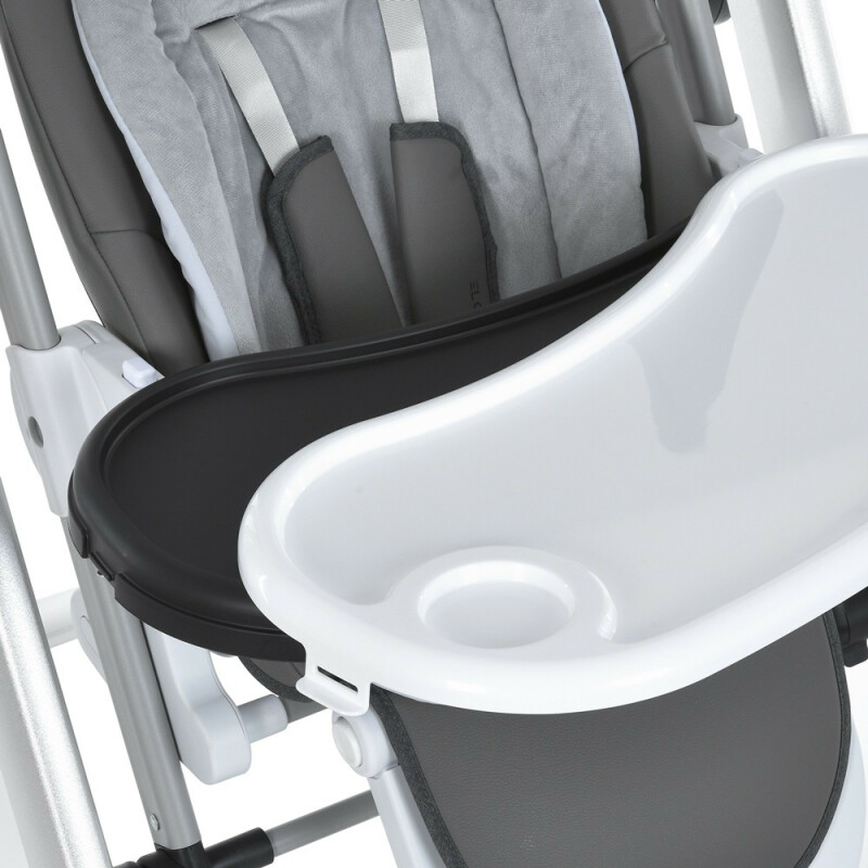 • Столик стільця має 2 положення глибини (20/26 см), знімний столик, з підносом для чищення. Можна від'єднати столик та розмістити на ніжках ззаду.